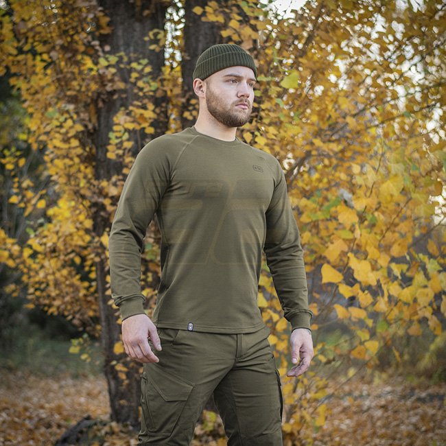 The versatile M-Tac Athlete Raglan in Dark Olive is a minimalist model perfect to wear daily in all seasons. With a round neckline, stretch cuffs, and raglan-design sleeve, it ensures freedom of movement. Material: 95% cotton / 5% elastane (Jersey knit).