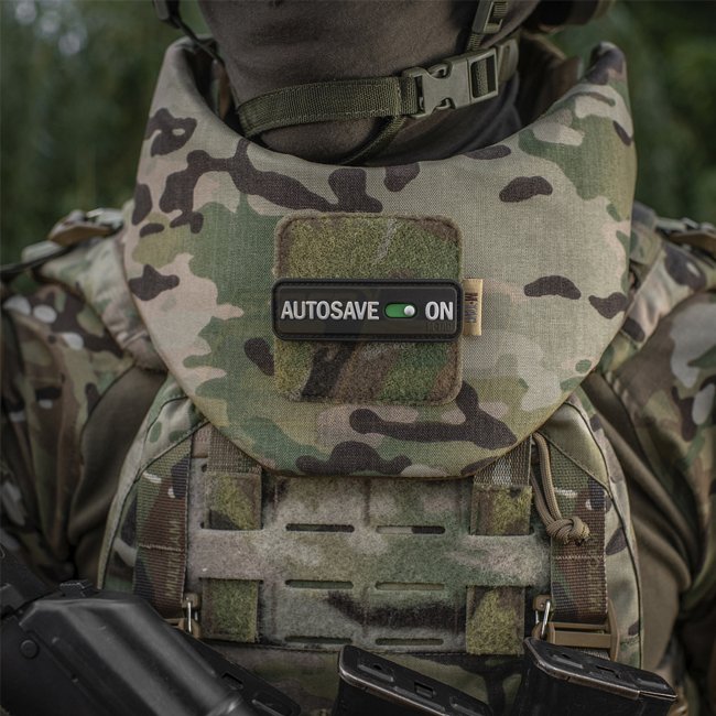 M-Tac Autosave Rubber Patch - Black. PVC front material and hook surface back. Dimensions: 80x25mm.