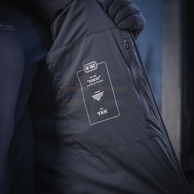 The M-Tac Berserk Jacket in Dark Navy Blue, size 2XL, combines innovative design and top-quality materials. Made of lightweight, water-repellent nylon from Toray with Austrian G-Loft insulation, offering warmth and moisture-wicking properties. Features zi