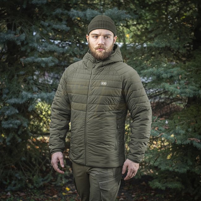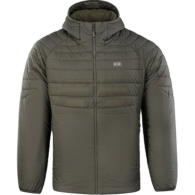 M-Tac Berserk Jacket - Olive - 2XL: Stylish demi-season jacket made of water-repellent nylon fabric from Toray. Insulated with Austrian G-Loft for high thermal insulation. Features zippered pockets, elastic cuffs, and reflective logo. Minimalistic design