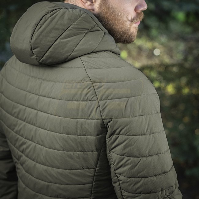Made of lightweight, breathable water-repellent nylon fabric from the Japanese company Toray. The jacket is insulated with an innovative Austrian G-Loft insulation with a density of 100g / m2, which has high thermal insulation qualities and easily evaporates moisture when wet. Also, this material organically combines the softness of down and the strength of synthetic fibers.