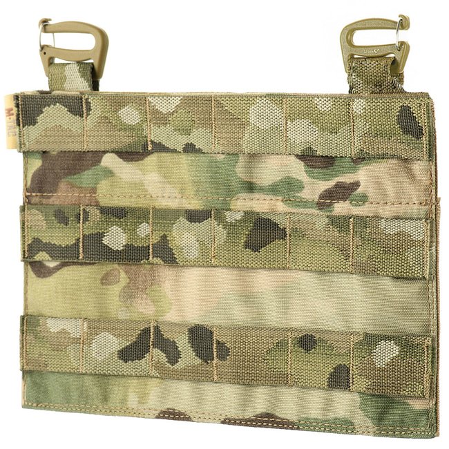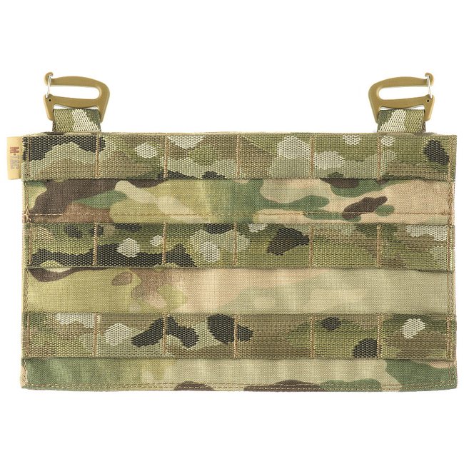 M-Tac Cuirass QRS Plate Carrier Front Panel in Multicam. Made of durable Cordura 500D material, attaches with Woojin hooks and Velcro. Holds three magazine pouches.