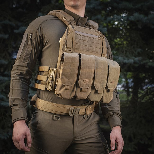 Made of high quality and durable Cordura 500D material. The panel is attached to the XL plate carrier using Woojin hooks and Velcro. The front panel can hold four magazine pouches.