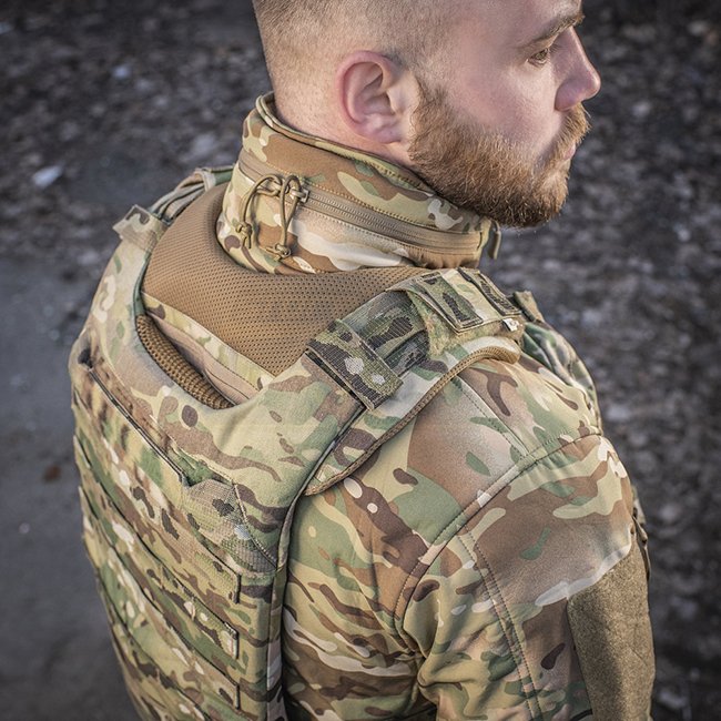 The M-Tac Cuirass QRS Plate Carrier Shoulder Damper in Multicam is a tactical accessory designed for comfort and durability. Made from Cordura 500D material, featuring 3D mesh panels for ventilation and pressure relief.
