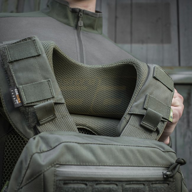 M-Tac Cuirass QRS Plate Carrier Shoulder Damper - Ranger Green: Designed for comfort and durability with Cordura 500D material to distribute load, provide excellent ventilation, and increase comfort when carrying equipment. Easy to attach to Cuirass QRS p