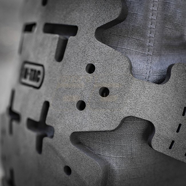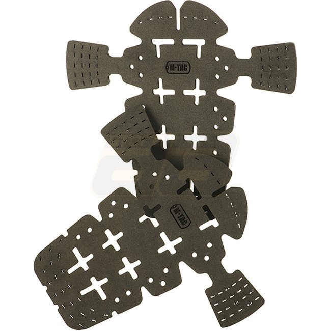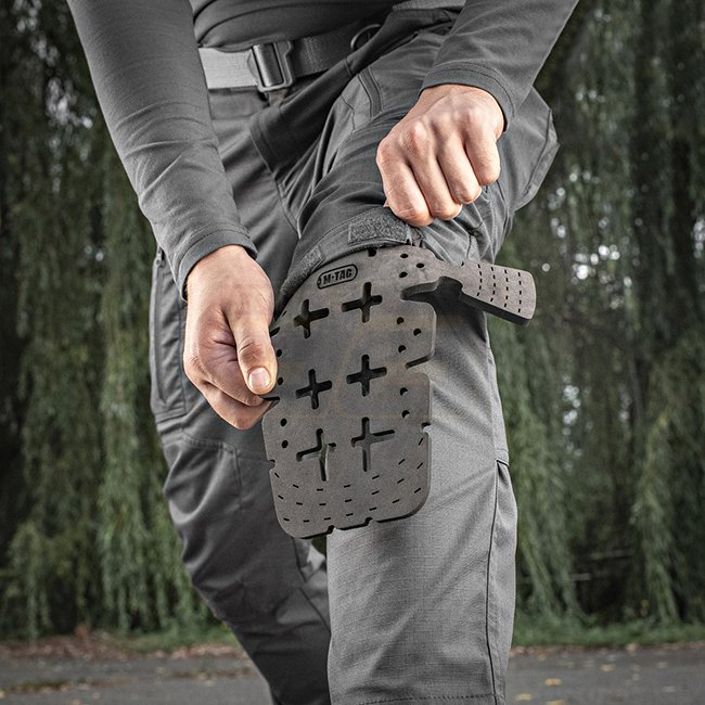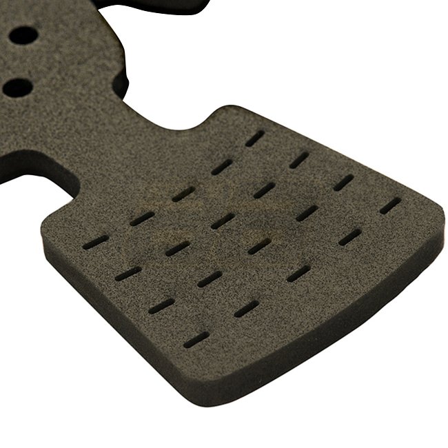 Made of a soft, 7mm thick EVA polymer material. EVA can restore its previous geometric shape even after a long stay in a deformed state. The knee inserts have cutting lines: the side one corresponds to the knee width, and the lower and upper ones correspond to the height, so you can adjust them to your knee joint size. They have ergonomic slots for comfortable bending of the leg and holes for additional ventilation.