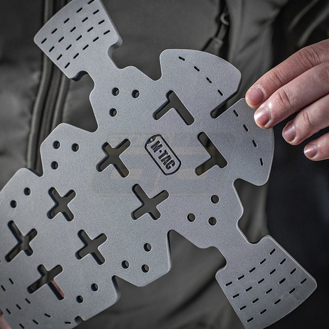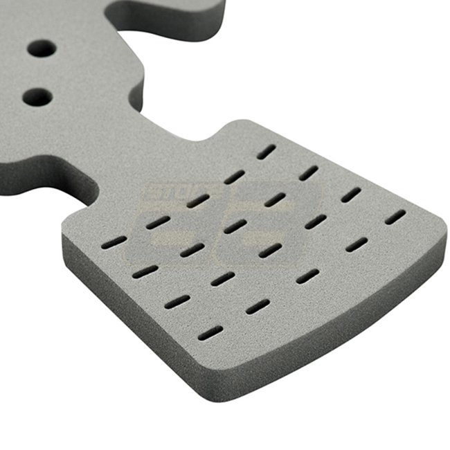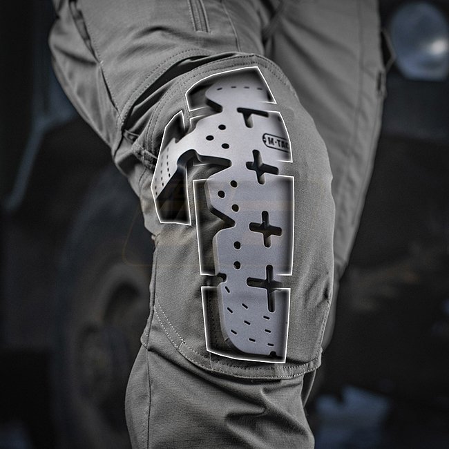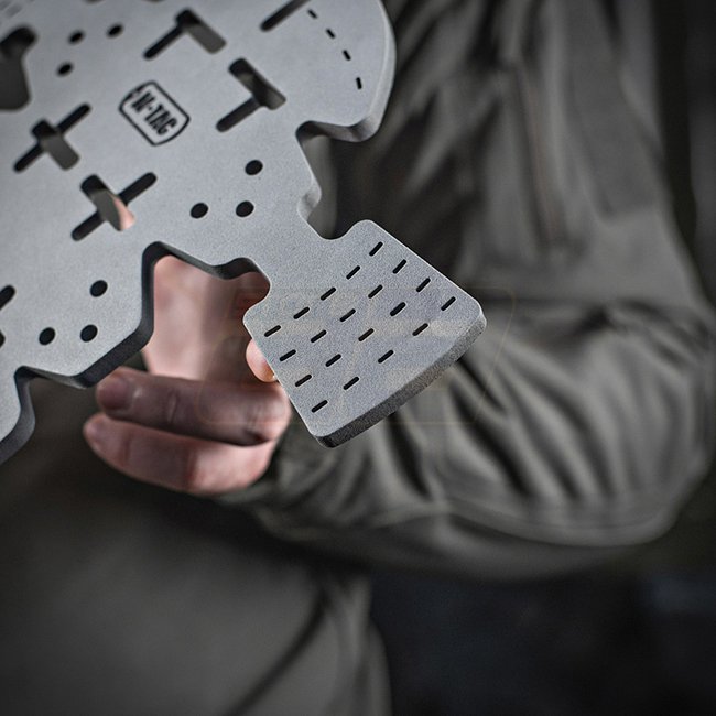 Made of a soft, 8mm thick EVA polymer material. EVA can restore its previous geometric shape even after a long stay in a deformed state. The knee inserts have cutting lines: the side one corresponds to the knee width, and the lower and upper ones correspond to the height, so you can adjust them to your knee joint size. They have ergonomic slots for comfortable bending of the leg and holes for additional ventilation.