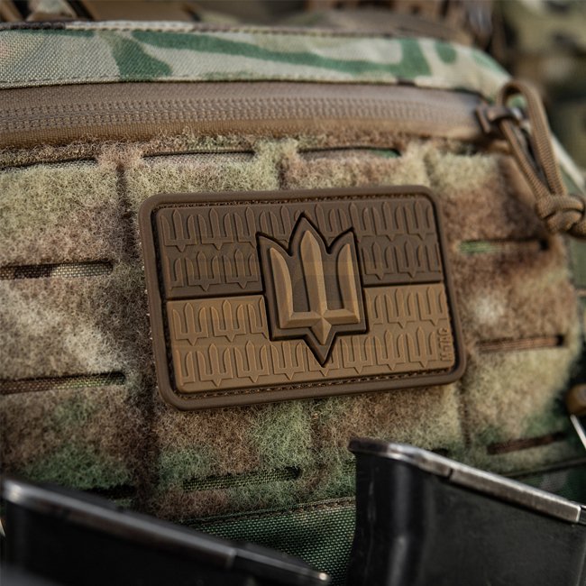 M-Tac Flag of Ukraine & Trident of the Armed Forces Rubber Patch - Coyote. PVC front, hook surface back, 80 x 50 mm.
