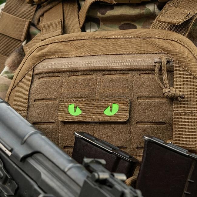 M-Tac Green Cat Eyes Laser Cut Patch - Coyote patch featuring cordura 500D front and hook surface back. Dimensions 80 x 25 mm.
