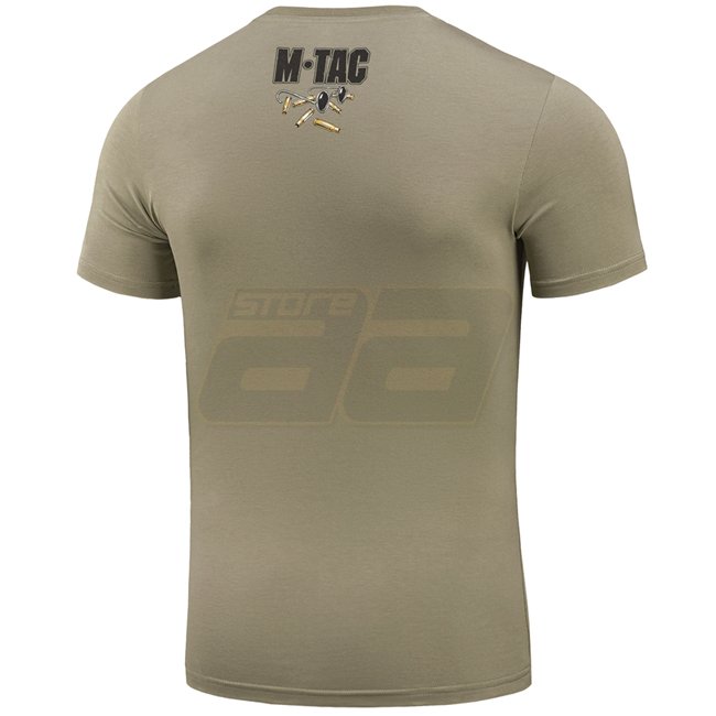 A humorous design for aspiring snipers - M-Tac Mole T-Shirt in Tan, XS size. Features a blind mole as a sniper symbolizing ambition and self-confidence. Material: 93% cotton, 7% elastane. Weight: 190 g.