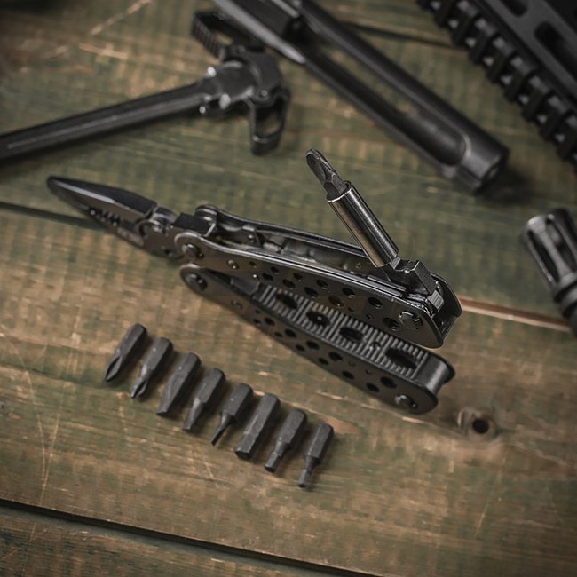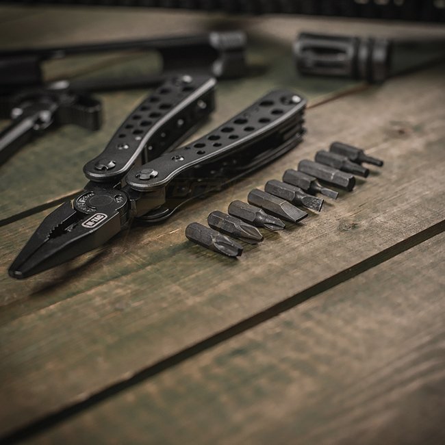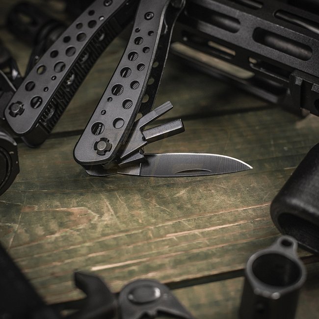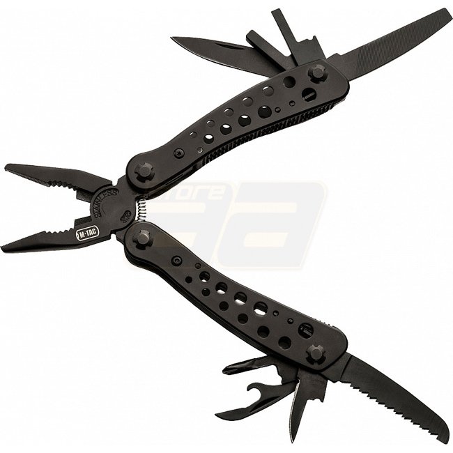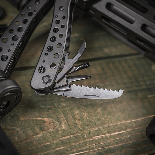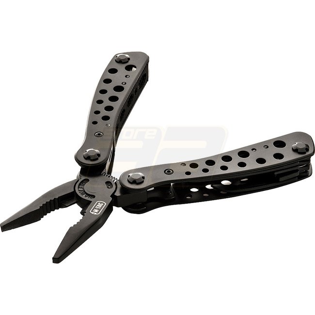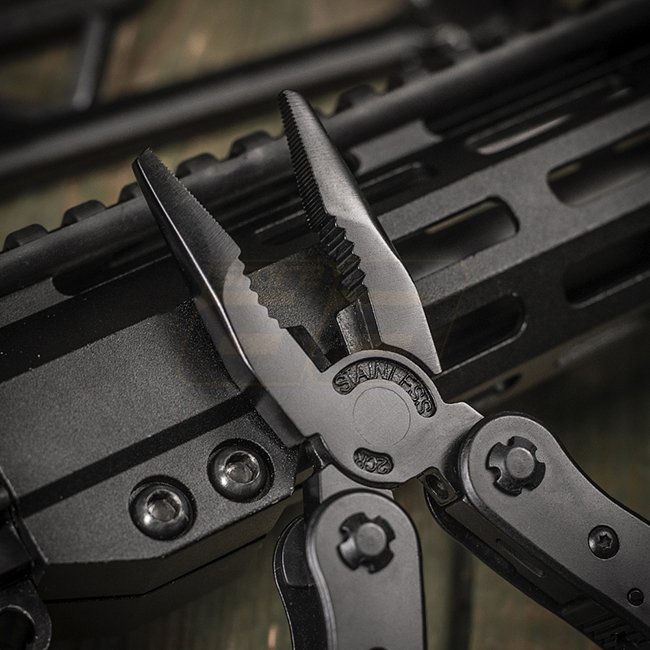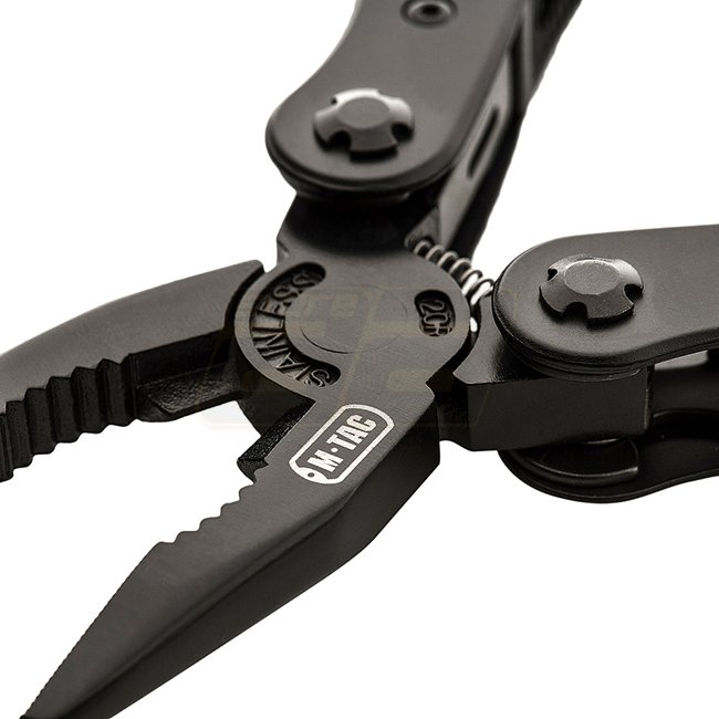 M-Tac Multitool - Black: High-quality, reliable, and affordable multitool with essential tools like pliers, screwdrivers, saws, can and bottle openers, and more. Compact and space-saving design. Material: 440C steel. Dimensions: 10.5 cm (closed).