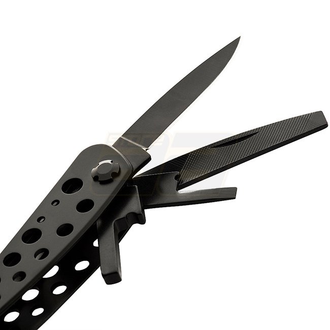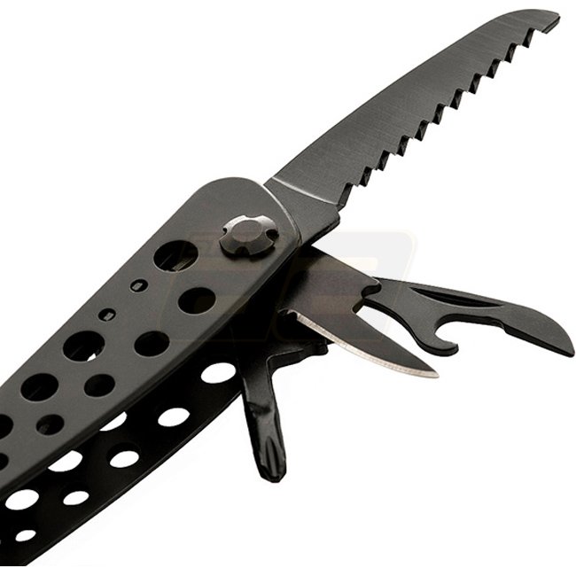 High-quality, reliable and relatively inexpensive multitool. The kit includes the most necessary and desired tools for everyday use: Pliers and wire cutters, screwdrivers, saws, can and bottle openers, and even a file, all in one compact, convenient set that takes up virtually no space when closed.