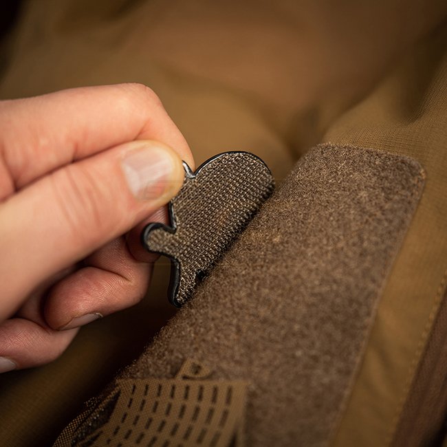M-Tac No Knife No Life 3D Rubber Patch - Coyote. Front: Rubber, Back: Hook surface. Dimensions: 50 x 50 mm.