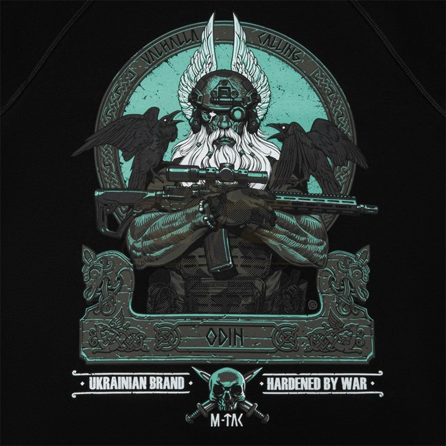 Continuing its product line with the image of the supreme god of Scandinavian mythology, M-Tac has released a new thematic ODIN MYSTERY LONG SLEEVE T-SHIRT. The print depicts a determined Odin who has exchanged his traditional spear (Gungnir) for an AR-15 rifle. Dressed in modern combat gear and an NVD helmet, he is ready to lead his warriors into the final battle. On Odin's shoulders sit his faithful companions - the ravens Hugin (Thought) and Munin (Memory), who fly around the 9 worlds every day and report to the supreme god about everything that has happened. The inscription "Valhalla Calling" is a modern interpretation of the legendary battle cry of the Vikings "Till Valhalla", with which they fearlessly went into battle. Every Viking wanted to glorify himself in battle and get to Valhalla - Odin's palace, where other warriors celebrated and waited for the final battle (Ragnarok). The M-Tac Odin Mystery Raglan is made of high-quality fabric (95% cotton, 5% elastane). The comfortable cut does not restrict freedom of movement, and the thin elastic knit successfully emphasizes the body shape and ensures comfort when wearing. Material: 95% cotton, 5% elastane Weight: 350 g