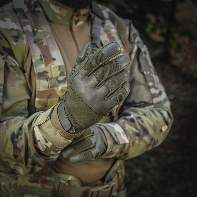 M-Tac Police Gloves Gen.II - Olive - S: Comfortable police gloves made from synthetic/leather with padded active zones and adjustable Velcro cuffs for a perfect fit. Made of Polyester/Leather palm.