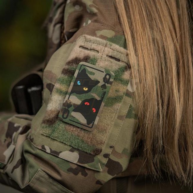 M-Tac Queen of Spades Print Patch - Multicam, made of durable Cordura 500D material, measuring 80 x 50 mm.
