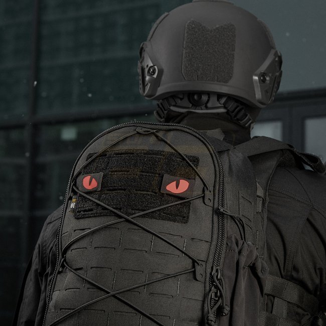 M-Tac Red Tiger Eyes Laser Cut Patch - Black. Cordura 500D front, Hook surface back, 40x25 mm.