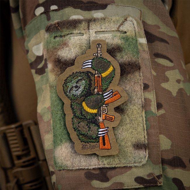 M-Tac Sloth Embroidery Patch - Coyote. Made of Cordura 500D on the front and feature a hook surface on the back. Measures 105 x 60 mm in size.