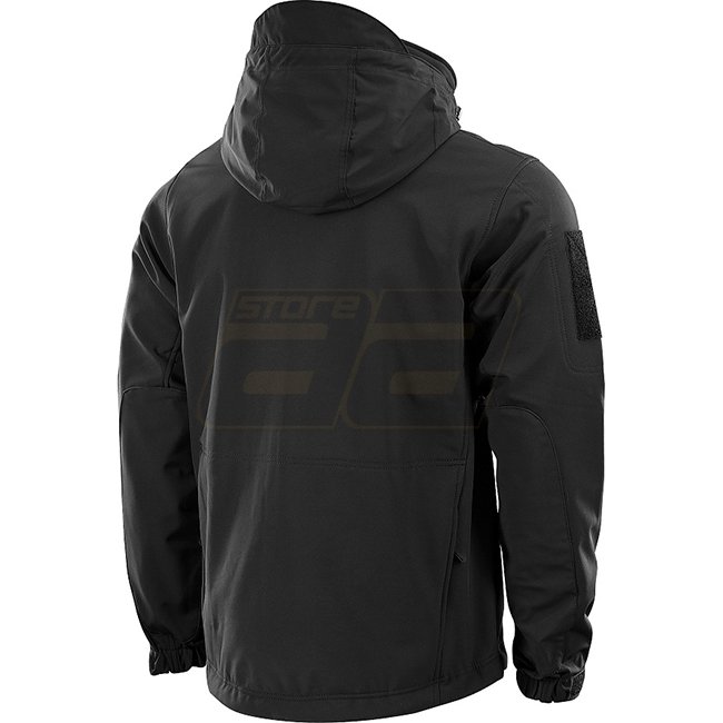 The M-Tac Soft Shell Jacket in Black XS features a durable polyurethane membrane for weather protection and a cozy fleece layer.