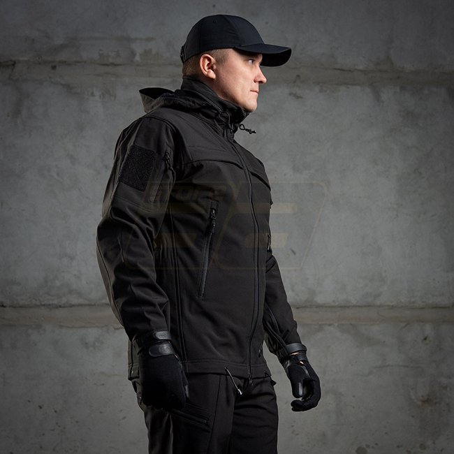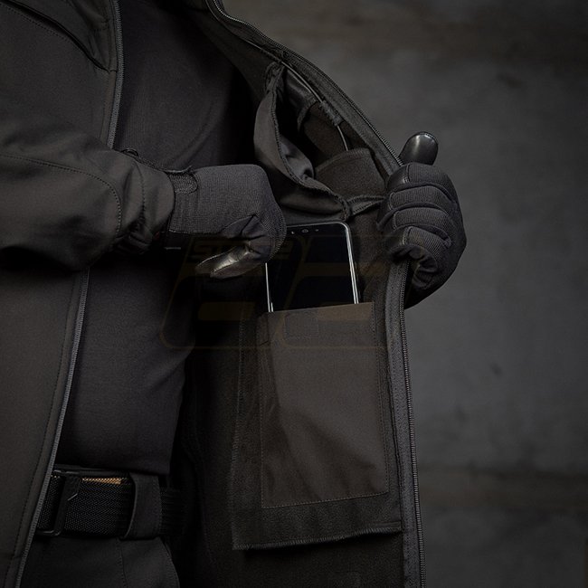 The Soft Shell Jacket is made of an interlayer polyurethane membrane that protects from bad weather. Inside, it has a thin fleece layer. It has two identification panels, which, depending on the situation, can be pulled out or remain hidden. The empty panels can be printed or emproided. A side opening system allows quick access to a side arm.