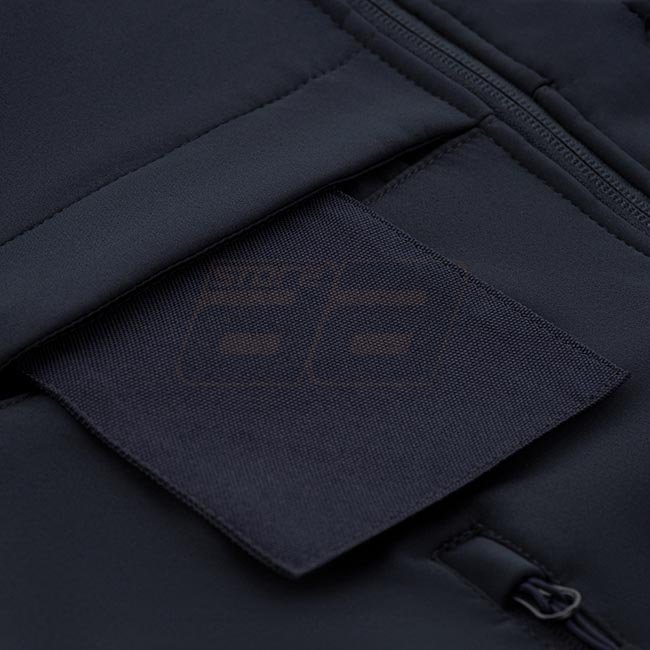 The Soft Shell Jacket is made of an interlayer polyurethane membrane that protects from bad weather. Inside, it has a thin fleece layer. It has two identification panels, which, depending on the situation, can be pulled out or remain hidden. The empty panels can be printed or emproided. A side opening system allows quick access to a side arm.