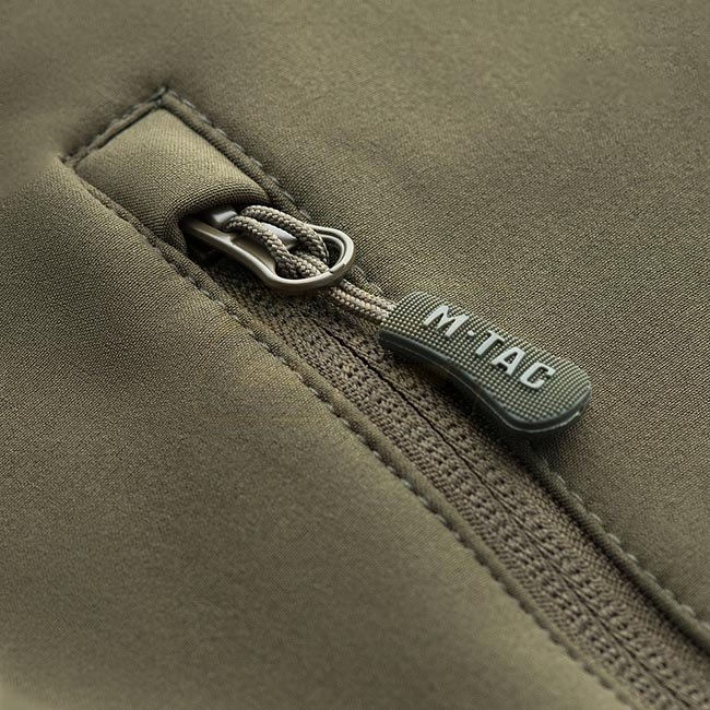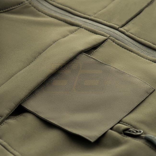M-Tac Soft Shell Police Jacket - Olive - XS: Protect yourself from bad weather with this high-quality soft shell jacket, featuring an interlayer polyurethane membrane and thin fleece lining. With two identification panels that can be hidden or displayed a