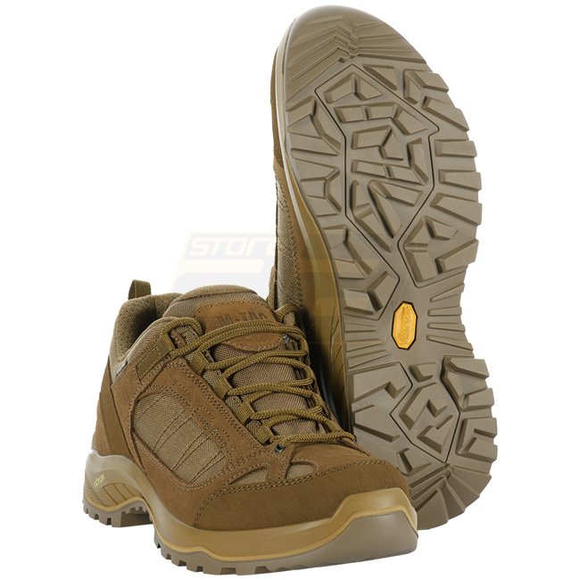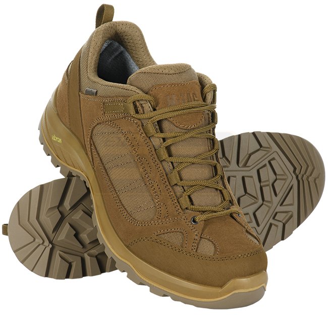 M-Tac Tactical Demi-Season Pro Line Sneakers - Coyote - 45. High-quality materials & Vibram sole. Moisture-resistant, wear-resistant, and ideal for training & off-road trips. Extended lacing & soft membrane lining for comfort. Rubberized toe & heel for du