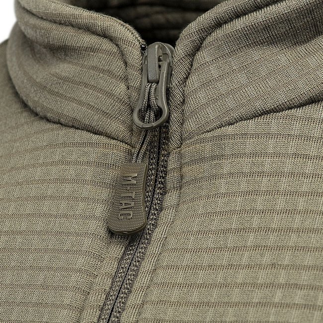 M-Tac Thermal Fleece Shirt Delta Level 2 - Army Olive - M is a thermal pullover shirt designed for cold weather. With warming and moisture-wicking properties, it is ideal for use in harsh climates.