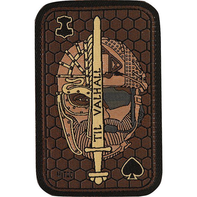 M-Tac Til Valhall Ace Woven Patch in Coyote color. Made of durable Oxford material with hook surface backing. Dimensions 68x108 mm.