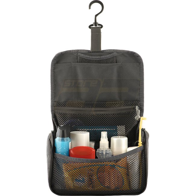 M-Tac Toiletry Kit - Dark Grey: Convenient and practical toiletry bag for compactly storing razor, toothbrush, toothpaste, creams, shampoos, and more. Made of 600D polyester. Dimensions: 42 x 27 cm (open) / 24 x 16 cm (closed).