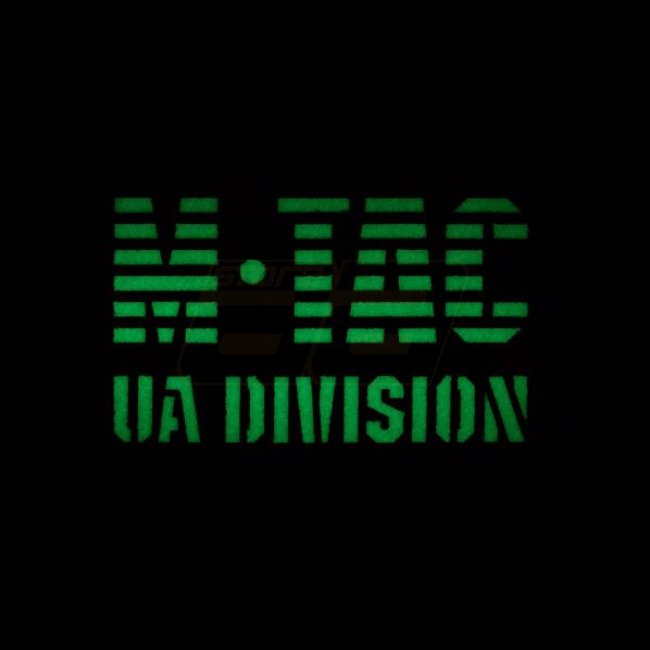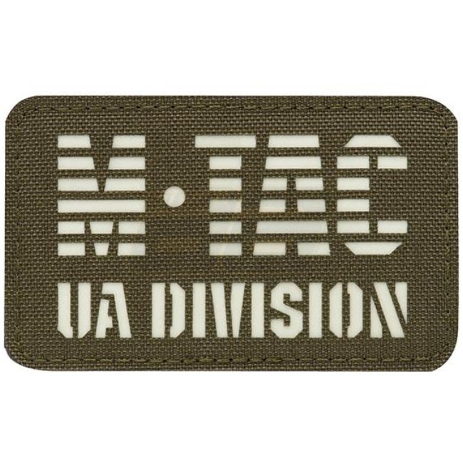 M-Tac UA Division Laser Cut Patch GID - Ranger Green. Front: Cordura 500D, light-storing material. Back: Hook surface. Dimensions: 80 x 50 mm.