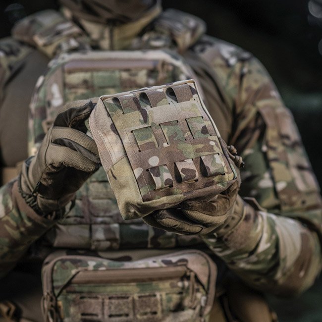 Made of Cordura 500D - super-strong fabric, resistant to abrasion and high loads. The summary is attached to the equipment using the MOLLE interface, made using Laser Cut technology. The front velcro panel is designed to attach IDs or your favorite patches.