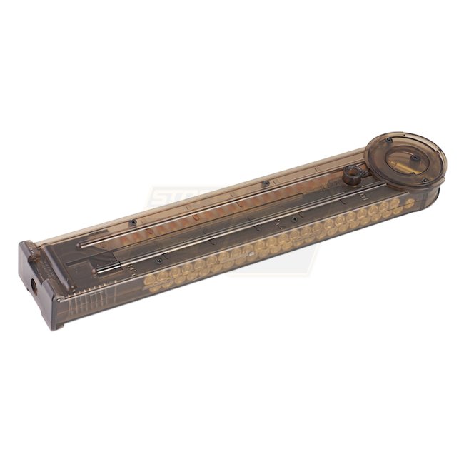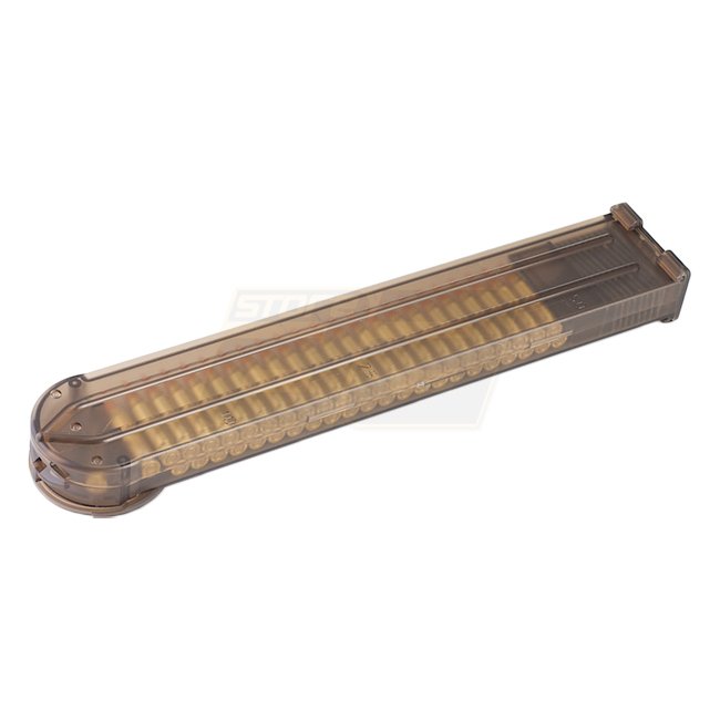 High-capacity magazine for Marui P90 airsoft gun, holding up to 68 rounds for extended gameplay.