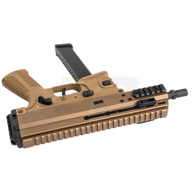 Ultra-kompaktes SMG Gas-Blowback-System in Glock-Mag-Konfiguration mit vielseitigen Montageoptionen und intern vorbereiteten Systemen für Zubehör und Tracer.