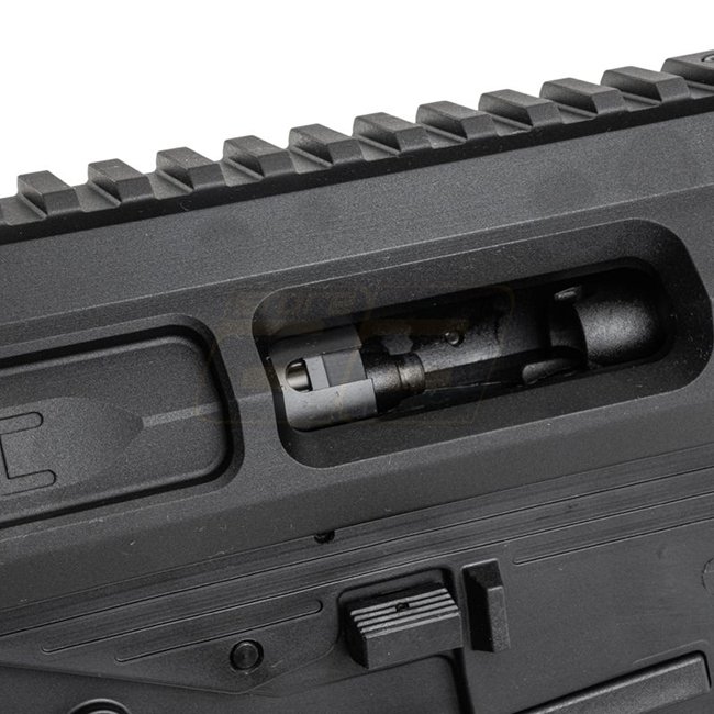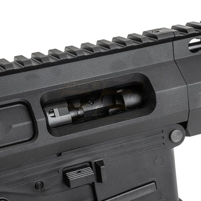 Ultra-compact SMG gas blowback system in a standard PDW layout with a hybrid M-LOK/Picatinny handguard and an integrally suppressed, tracer-ready muzzle device.