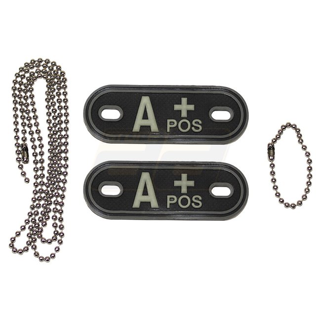 MFH Blood Group Markers & Chain A POS - Glow in the Dark - 7cm x 2.5cm x 2mm, 100% Rubber