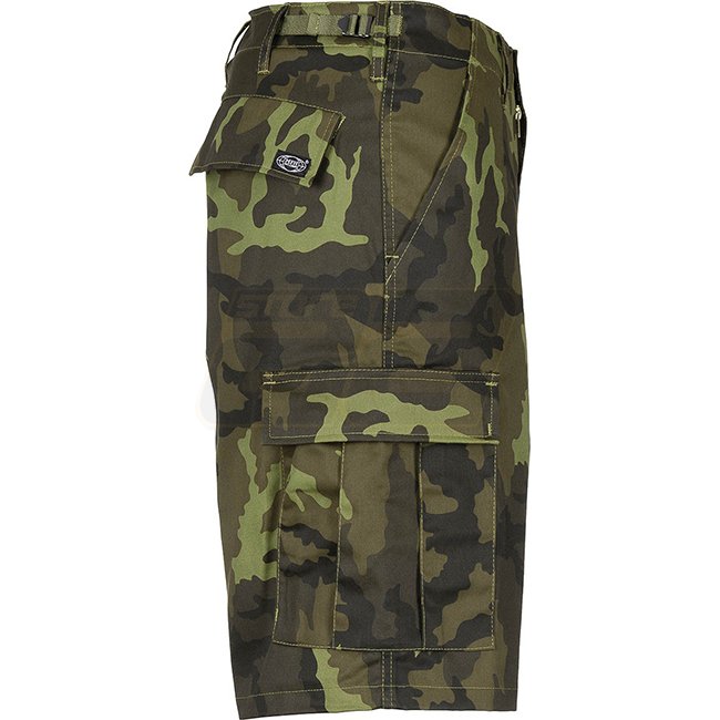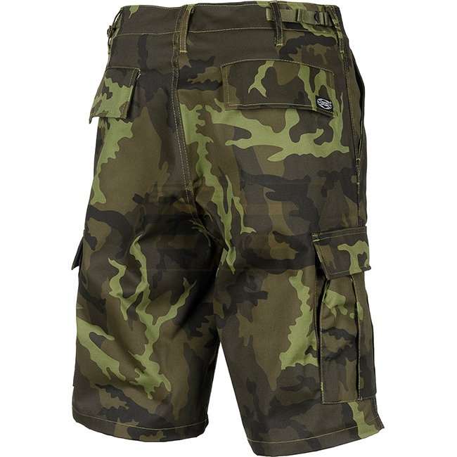 MFH BW Bermuda Shorts Side Pockets - M95 CZ Camo - 3XL: Front zip, 2 pants pockets, 2 hip pockets with flap and buttons, 2 leg pockets with flap and buttons, adjustable waistband, extra wide belt loops (ca. 6 cm). Material: 65% Polyester, 35% Cotton.