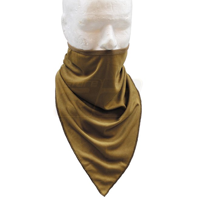 Stay protected from the elements with the MFH Tactical Scarf in Coyote. Triangular design with elastic strap for a comfortable, secure fit. Made of breathable and moisture-wicking 100% polyester.