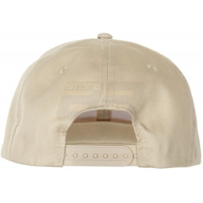 Adjustable snapback closure, reinforced seams, and bent 6-times quilted visor. 6 ventilation eyelets. One-size-fits-all. Made of 65% Polyester, 35% Cotton.