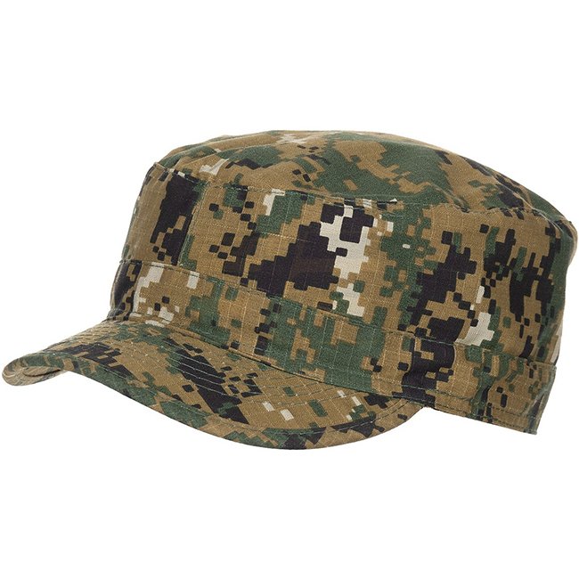 Stay stylish in the outdoors with the versatile MFH US BDU Field Cap Ripstop in Digital Woodland - L. Classic US field cap with round visor, made of 100% Cotton.