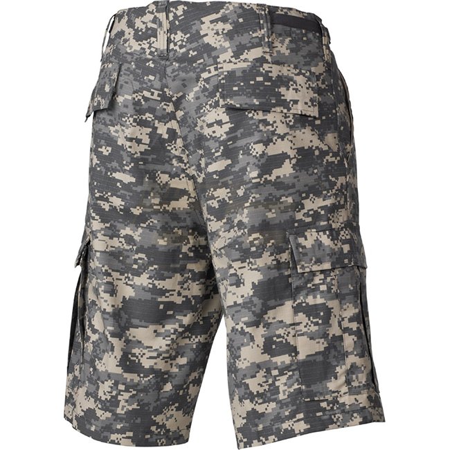 MFH US Bermuda Shorts Ripstop - AT Digital - XL are durable and functional shorts made from 100% Cotton. Featuring a button fly, 2 pants pockets, 2 hip pockets with flap and buttons, and 2 leg pockets with flap and buttons. They also have an adjustable wa