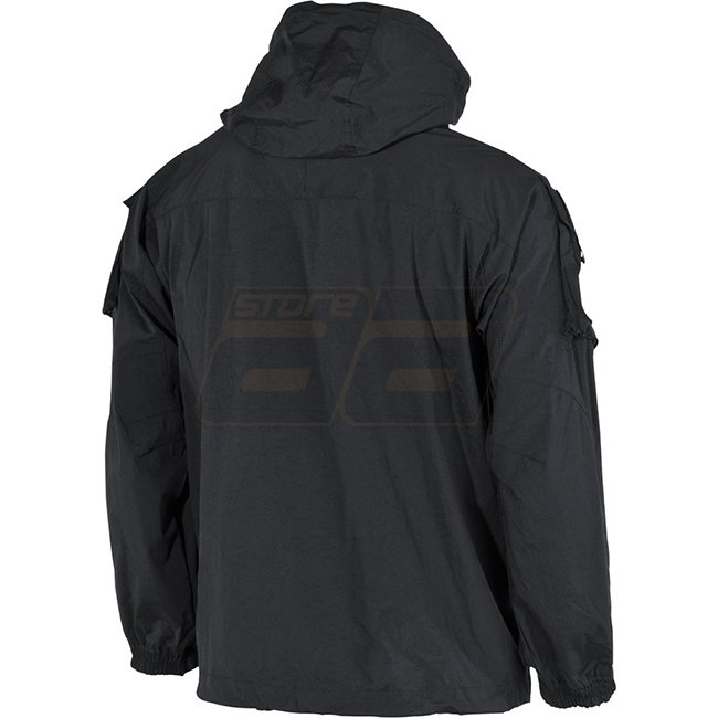 MFH US Soft Shell Jacket GEN III Level 5 - Black - 3XL - Waterproof, windproof, breathable soft shell jacket with concealed zip, multiple pockets, adjustable sleeve ends, elbow darts, and velcro panels for customization. Material: 98% Nylon, 2% Elastane.