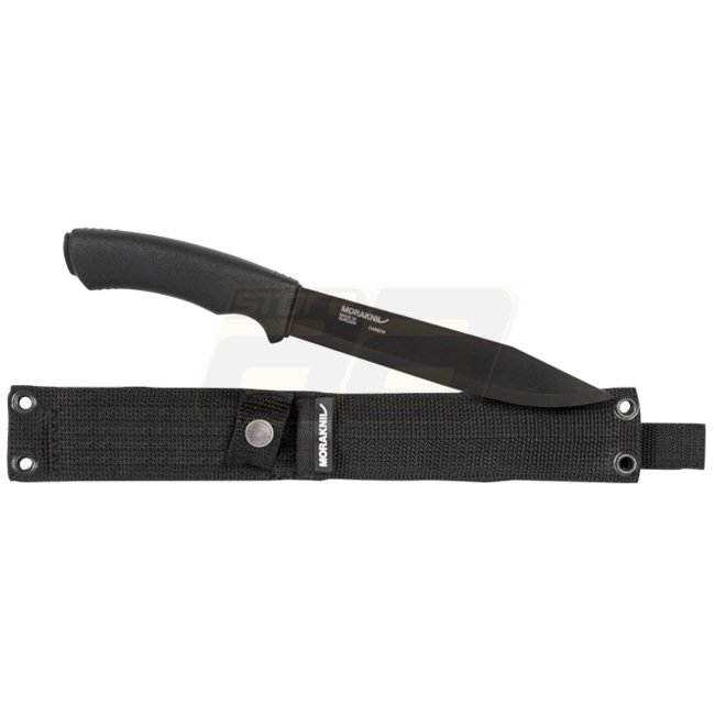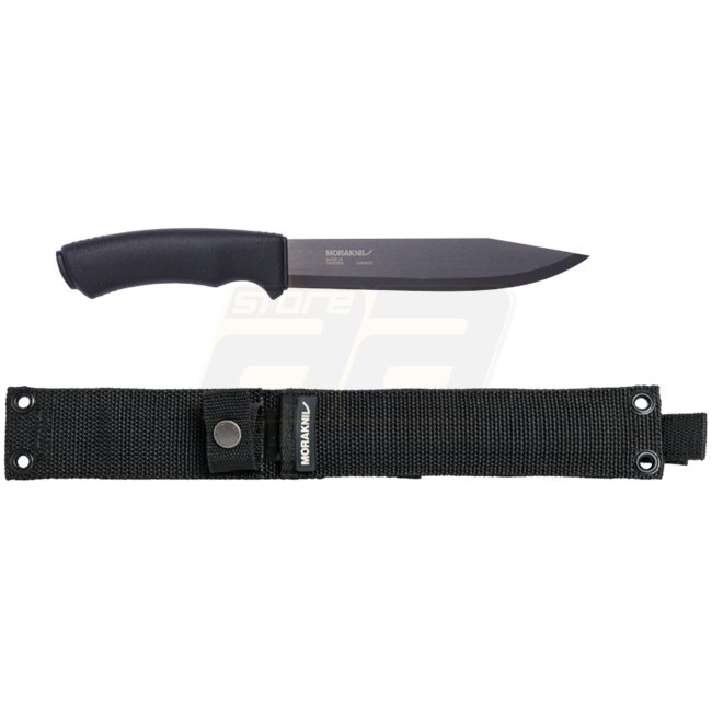 Morakniv Pathfinder - Carbon Steel - Black. A reliable tool for outdoor adventures with a strong and durable blade crafted from carbon steel. Lightweight at 255g with a blade length of 170mm and total length of 295mm. Blade hardness at 58-60 HRC and a bla