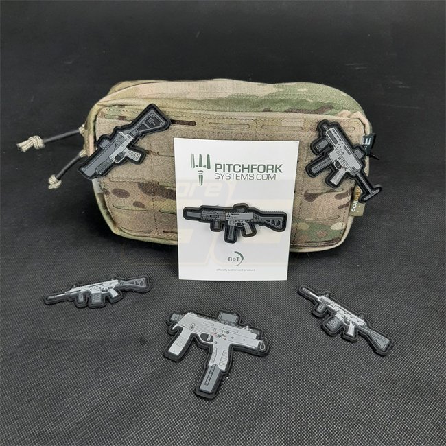Velcro backed rubber patch with dimensions 81 x 32mm, officially authorized by B&T Switzerland.