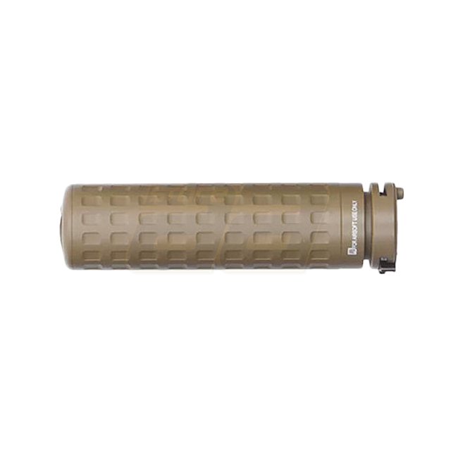 Upgrade your airsoft rifle with the PTS Griffin M4SD-K Mock Suppressor in Dark Earth. Made of aluminum, 148mm length, 38mm diameter. Compatible with A2 flashhider and Griffin Armament Brake/Comp.