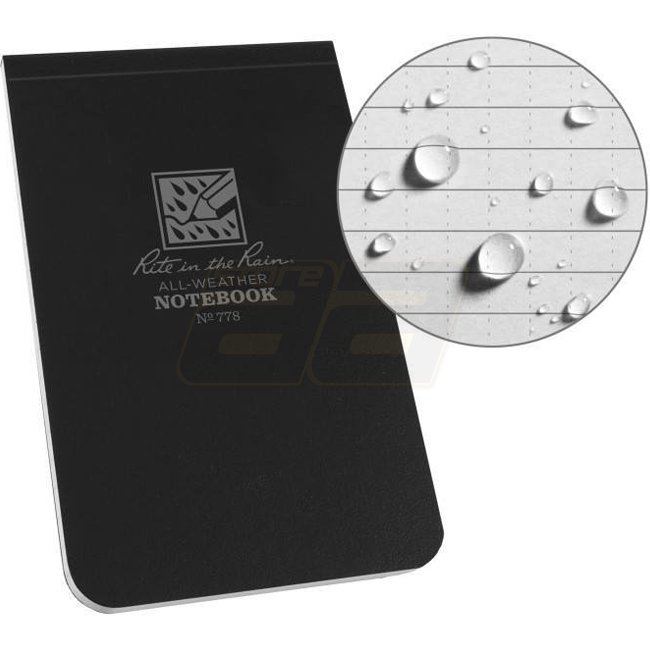 Rite in the Rain Field-Flex Notebook: durable 3.25" x 5.25" black notebook perfect for outdoor use. Features heavy-duty binding, flexible covers, and useful printed tools. Made in the USA.