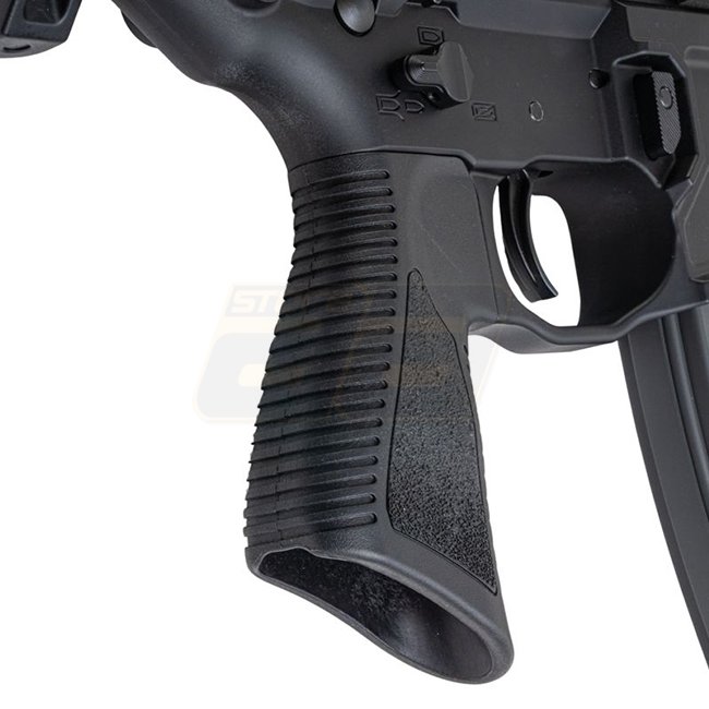 Feuerschalter, Ladehebel und Magazinauslösung sind beidseitig ausgelegt. Das Gehäuse verfügt über einen verbreiterten Magwell und integrierte QD-Sling-Punkte. Der klappbare Schaft mit gummierter Schaftrückseite verbessert Handhabung, Dämpfung und Transport.
