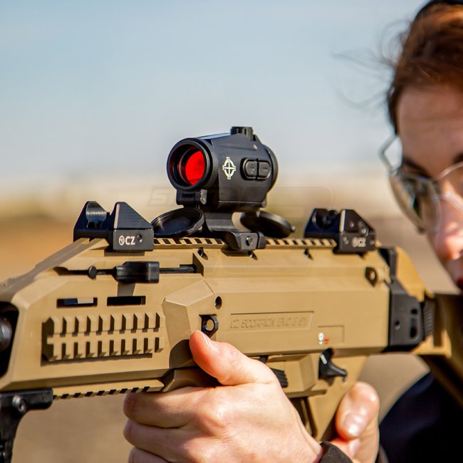 Sightmark MTS-Mini Solar Red Dot is a compact red dot sight with 1x magnification and 3 MOA dot reticle. It offers 10 daylight brightness levels and has a maximum elevation adjustment of 120 MOA and windage adjustment of 160 MOA. Equipped with a CR2032 ba