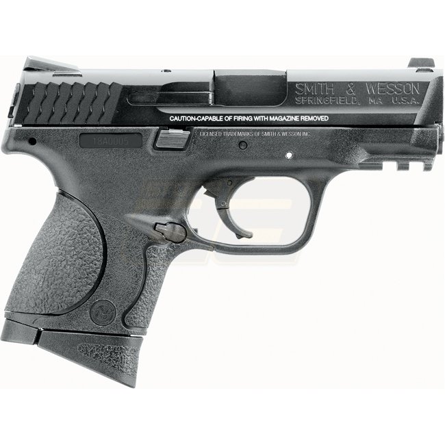 High-quality Smith & Wesson M&P9 Compact Gas Blow Back Pistol in Black. Metal/polymer construction, 14-round magazine capacity, 170mm length, 550g weight, 70mm inner barrel. Muzzle velocity of 310-330 FPS / 0.89-1.01 Joule, semi-auto shooting mode, shooti