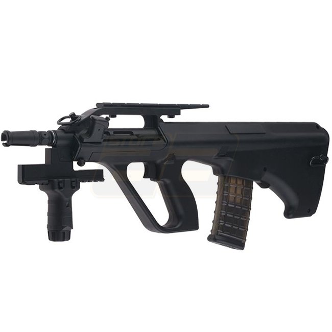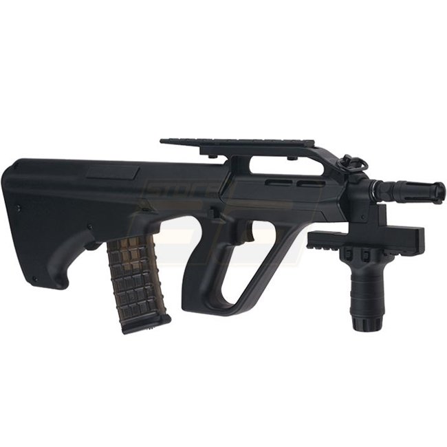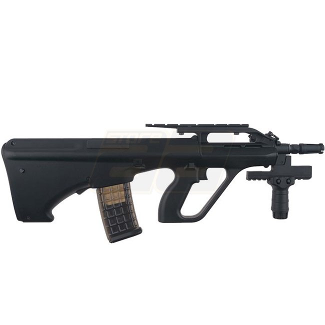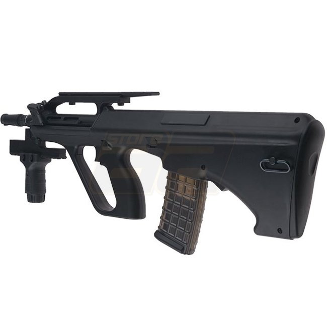 Snow Wolf SW-020TB AEG - Black. Metal stock polymer material, 330 round magazine capacity, 620mm length, 2900g weight, 270mm inner barrel length, 14mm- muzzle thread, 390-410 FPS, Semi Auto & Full Auto shooting mode, 53.51-56.25m shooting range, Adjustabl